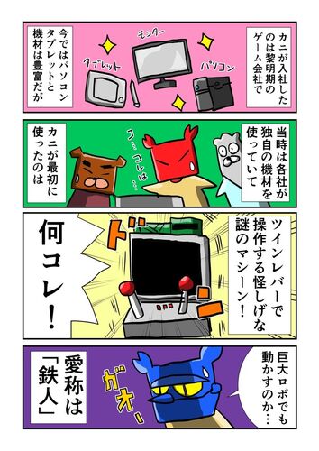 【はたらきガニメモリアルその11】新卒無試験で潜り込んだのはブラック臭漂うゲーム会社!デザイン部門での採用だったものの、当時はまだ今のように世間的にも開発機材は充実しておらず、各メーカーが独自の機材を使っていました。タブレットも液晶モニター…