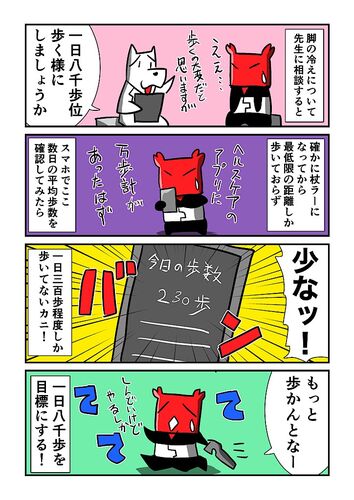 【黄色靭帯骨化症その290】病院の定期検診のついでに脚の冷えとか筋肉減少について先生に相談してみた。当たり前だが杖ラーになって外を歩く時間が激減してるせいでサルコペニアの危険性もあるとの事。歩く事自体がしんどいだろうけど1日8000歩は歩くように…