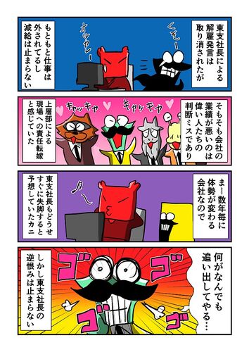 【はたらきガニメモリアルその237】正当な理由が無いので解雇理由証明書を出すに出せなかった東支社長は、結局自分の権力を勝手に拡大解釈しただけの愚行で終わったw。そもそも会社の業績がうまくいってないのは偉いさん方のプロジェクト運営の為の人選を間…